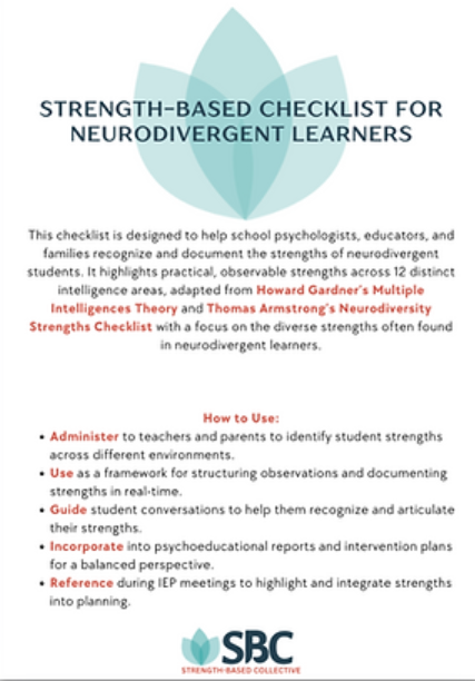 The Strengths Collective is another website with lots of resources including a Strength-based Checklist for Neurodivergent Learners!